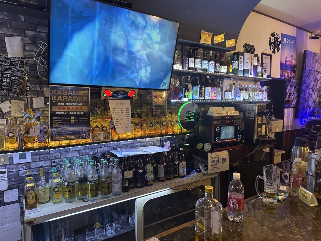 やはりマスターのカラーもあってか、ここに集う多くのお客さんたちがカラオケがお上手なんです!そしてもちろんなんですが、当然マスターもカラオケが大好きなようで、僕は一緒に歌っていただきました。あまり表面化していない情報ですがカラオケは有料で1曲200円しますので、お財布と相談して楽しんでもらえるといいのかなと思います。残念ながらステージなどは設けられておらず、普通にお席で。時には気合い入れて立って歌うというのが基本スタンスとなります。