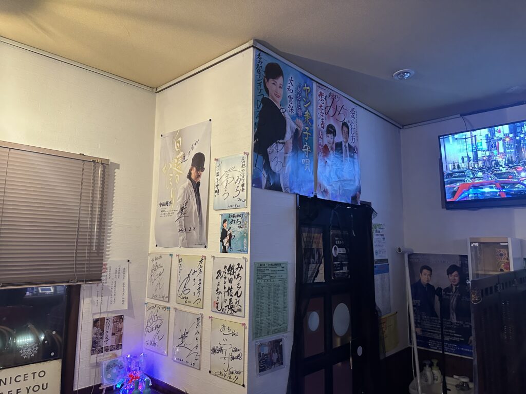 店内には若手の歌手さんのサイン入りポスターが複数掲示されてました